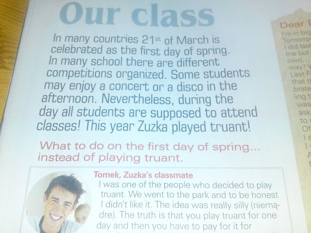 Tu na przykład, w trzeciej linijce wprowadzającego akapitu, dużą, wytłuszczoną czcionką napisano zdanie zaczynające się od słów „In many school…”. Dość trudno przeoczyć ten błąd, nawet przeciętnemu uczniowi, jak pospiesznie musiał więc pracować autor tego tekstu i gdzie w wydawnictwie podziała się korekta?